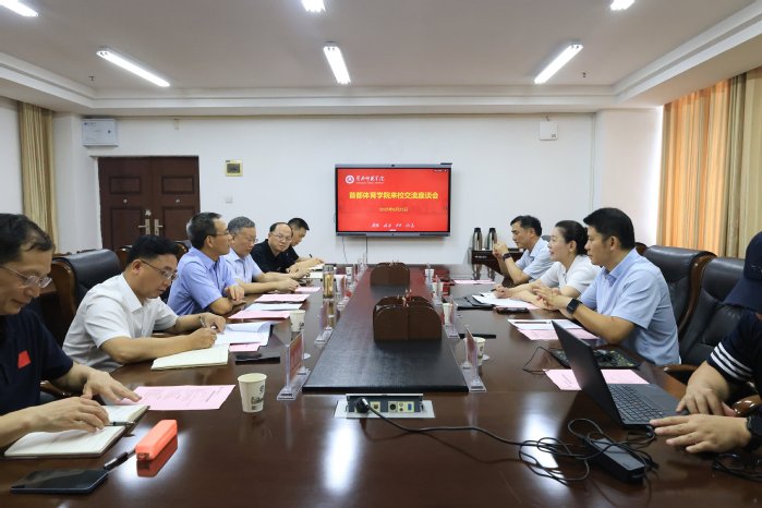 本网讯 8月23日,首都体育学院党委副书记、校长张霞,党委常委、副校长丁传伟一行来校交流。校党委书记陈向军陪同校内参观考察,校党委副书记、校长漆昌柱出席交流活动。